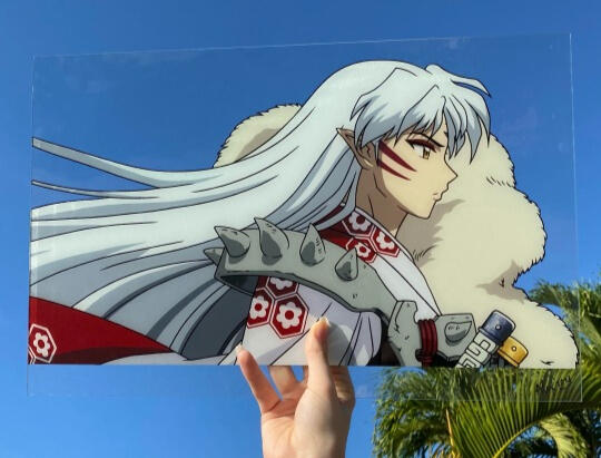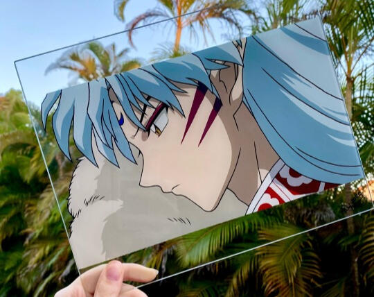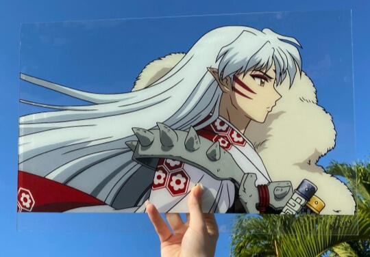 Some of my favorite glass paintings to date. As of right now, I've made over 50 individual pieces, and I continue to create more everyday! Smaller pieces can take me a modest 5-7 hours, while other larger pieces, 11 by 17 inches like the Sesshomaru pictured, can take me 20+ hours to complete.